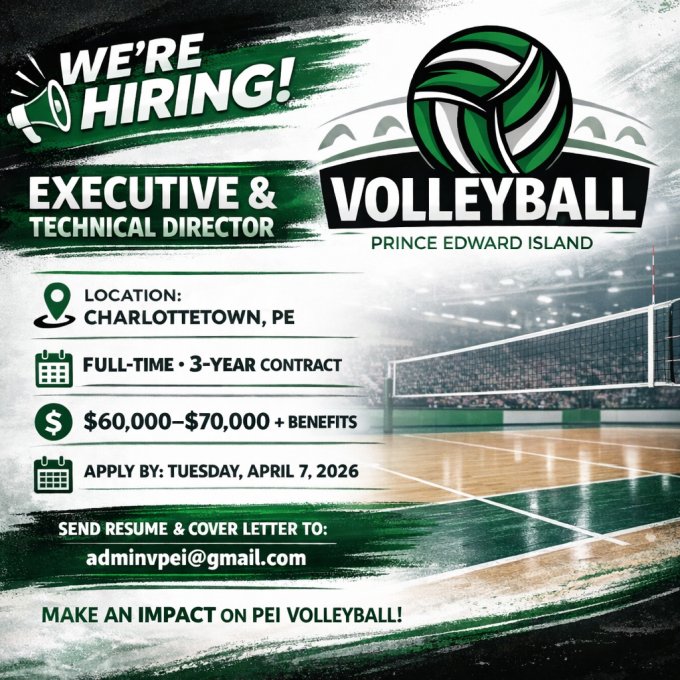 Volleyball PEI is seeking an Executive & Technical Director to help lead the growth and development of volleyball across Prince Edward Island.